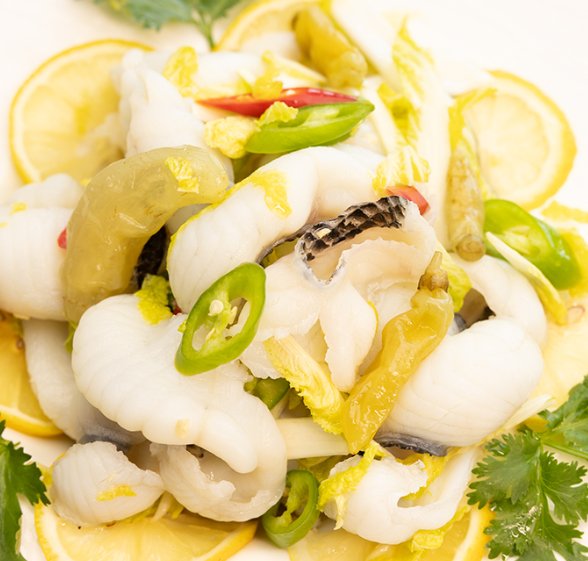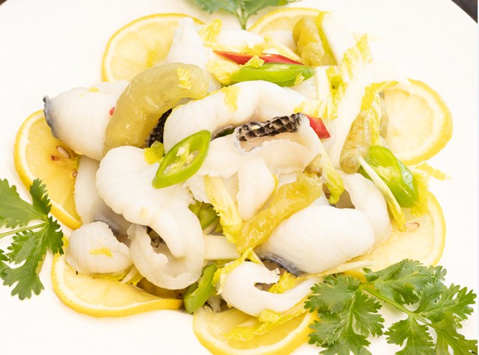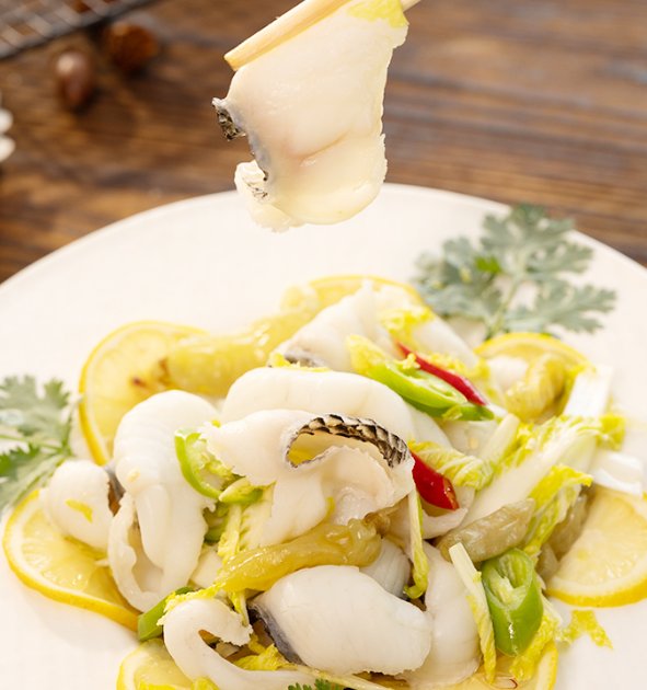 去鳞去刺,刀工细腻,黑鱼片薄厚均匀鱼肉肉质晶莹,口感更佳